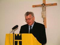 Ich will schließen mit einer Begebenheit von der Kommandeurstagung im Leipzig im vorletzten Jahr. Da kam ein pensionierter General auf mich zu und sagte zu mir: "Herr Bischof, ich bin Protestant. Ich muss ihnen etwas sagen. Ich habe den Eindruck, dass wir hier von unserer evangelischen Seite, ich weiß nicht wie das bei ihnen in der katholischen Kirche zutrifft, einen Fehler gemacht haben. Finden sie nicht auch, dass wir vielleicht nach der Wende zu sehr mit unserer christlichen Überzeugung, mit unserem christlichen Menschenbild zurückhaltend waren, dass wir zu wenig missionarisch aufgetreten sind?" Dann sagte ich ihm: "Herr General, ich traue mir jetzt nicht zu, hier ein umfassendes Urteil zu fällen. Aber ich gebe ihnen in einem Punkt vollkommen recht: Vom christlichen Menschenbild, von der Person Jesu Christi, dieses liebenden und lebendigen Menschen, vom Pluszeichen des Kreuzes her, haben wir wirklich ein Alternativprogramm für unsere heutige Gesellschaft anzubieten." Keiner wird Jemandem eine christliche Keule um den Kopf schlagen wollen, aber wir haben Möglichkeiten dieses Alternativprogramm, diese Befreiung vom Bösen und vom Tod, diese Hinführung zu einer Sinnerfüllung des Lebens, weil sich eben auch das Sterben lohnt in Jesus Christus, diese Botschaft weiter zu geben, damit Menschen positiver, bewusster, sinnerfüllter leben können. Und ich denke, das ist überhaupt unser großes Plus, unsere große Chance in der Militärseelsorge: Wir drängen niemanden unsere Überzeugung auf, das versteht sich rein menschlich und christlich von selbst, aber wir halten das christliche Menschenbild, die Person Jesu Christi, das Licht dieser Welt in alle Finsternis als Alternativprogramm anderen vor Augen und sagen: "Überleg einmal, ob nicht gerade dieser Gekreuzigte, dieser Auferstandene auch viel Licht hineintragen kann in deine Finsternis, dir Hoffnung geben kann, für das Leben und für das Sterben: "Ich bin nicht gekommen die Welt zu richten, sondern ich bin gekommen, Menschen zu retten." Amen.