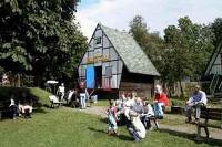 "Urlaub unterm Regenbogen"Familienferien mit der Katholischen Militärseelsorgevon Siegfried Bradatsch | | | Olpe-Biggesee, 08/2002. Bei der Ankunft am frühen Nachmittag erscheint das Haus wie ausgestorben. Leerer Spielplatz, leerer Kindergarten. Klar, es ist endlich schönes Wetter. Die Familien nutzen die Angebote der reizvollen Landschaft mit ihren Bergen, machen Ausflüge oder Wanderungen. Erst zum Abend wird es richtig lebendig. Der Speisesaal scheint zu bersten. Lebhaftes Treiben herrscht am kalten Buffet. Kindergeschrei, Väter mit Baby auf dem Arm, Mütter, die diskutieren. Doch irgendwie findet jeder seinen Platz. Zum Nachtisch breitet sich fast andächtige Stille aus.