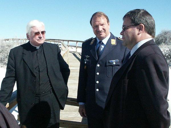 Oberst Wolfgang Fahl (m.) von Holloman AFB empfängt Gruppe, rechts Pastoralreferent Hubert Münchmeyer