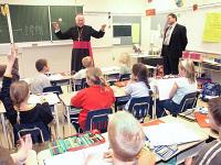 | | In der Deutschen Schule in Alamogordo | Mehr beeindruckt zeigt sich Militärbischof Mixa von der Realität. So, als er von Hilfsaktionen von Bundeswehrangehörigen im mexikanischen Grenzgebiet erfährt. Die Frauen von „Helping Hands“ etwa versorgen die Bevölkerung in den Randgebieten der Stadt Juarez mit lebenswichtigen Nahrungsmitteln. Der Bischof stellt für die verschiedenen Projekte tausend Dollar zur Verfügung.