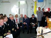 Zum Ende des Gottesdienstes überreichte Prälat Rafoth das Kreuz, vor dem wir die Heilige Messe gefeiert haben, dem Kommandanten des Schiffes. Anschließend wurden zu Ehren der Gäste von der Bläsergruppe des Marinemusikkorps Ostsee die polnische und die deutsche Nationalhymnen gespielt. Nach dem Gottesdienst waren die mehr als 150 Teilnehmer zu einem Empfang mit Kaffee und Kuchen eingeladen.