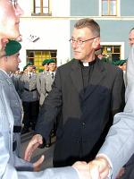 Feierliches Rekrutengelöbnis in VohenstraußMilitärgeneralvikar Prälat Walter Wakenhut hielt die Gelöbnisrede | | | Als eine Herausforderung für den Lebensweg eines jungen Mannes bezeichnete Militärgeneralvikar Walter Wakenhut die Entscheidung zum Wehrdienst. Verantwortung für das Gemeinwohl zu übernehmen, Kameradschaft zu lernen und treu zu dienen, dazu ermutigte der Leiter des Katholischen Militärbischofsamtes in Berlin in seiner Rede die rund 300 Rekruten aus den Standorten Oberviechtach und Neunburg v. Wald beim feierlichen Gelöbnis am 30. Juli 2003 in Vohenstrauß in der Oberpfalz. Nicht blinder Gehorsam sei das Ziel der Ausbildung, sondern verantwortliches, mit eigenem Gewissen vereinbares Handeln.