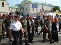 | | Gruppenbild der deutschen Pilger mit polnischen Kameraden | Militärpfarrer Zbigniew Mlak berichtet von den Erlebnissen der Pilger: "Nach der Heiligen Messe in der Militärkirche Warschau sind wir am 5. August mit 30 slowakischen und 550 polnischen Soldaten losmarschiert. Die ersten Kilometer wurden wir durch unsere Gastgeber Militärbischof General Slawoj Glodz und Generalleutnant Pietrzyk begleitet. Es marschierten nicht nur Soldaten auf der Fußwallfahrt; wir waren umgeben von vielen anderen Pilgergruppen wie Studenten, Jugendlichen, alten und jungen Menschen. Mit Gesang und Gebet marschierten wir durch die Straßen von Warschau. Die erste Etappe, 45 Kilometer, war auch direkt die schwierigste, das Wetter war nicht gerade auf unserer Seite: 34 °C. Jedoch die ganze Stimmung, die Atmosphäre um uns herum, war wie ein Hauch des kalten Windes oder wie ein Schluck Wasser."