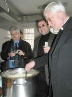 |  | | Links: Pater Mijo Dzolan, Provinzial der Franziskaner, informiert Militärbischof Dr. Walter Mixa über das Projekt „Armenküche“ |