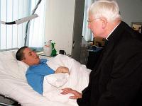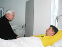 |  | | Militärbischof Dr. Walter Mixa besucht einen Kranken im Feldlazarett in Rajlovac. |