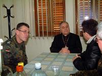 „Der Patient hat keine Nationalität“Militärgeneralvikar Walter Wakenhut besucht Militärseelsorger im Kosovo | | | Kosovo, 03/2004. Freundlich und zuvorkommend begrüßt Jeton Kelmendi (16) die deutschen Gäste, die mit Kastriot Dodaj vom Jesuit Refugee Service, dem Jesuitenflüchtlingswerk ins Haus seines Onkels nach Pristina/Kosovo kommen, um ihm einen Besuch abzustatten. Ein aufgeweckter Junge! Er geht in die Mittelschule, 10 Klasse, und möchte einmal Jurist werden Man sieht ihm sein Schicksal nicht auf den ersten Blick an. Jeton ist eines der Opfer, das im September 1999 durch eine Landmine seinen linken Unterschenkel verlor. „Es schmerzt“, sagt er, je nach Witterung der Natur oder Wachstum des Körpers. Es ist die dritte Prothese seit 1 ½ Jahren. Diese ist in Spanien gemacht worden. „Eine kostenlose Behandlung“, sagt er nach Rückfrage und mit Blick auf Kastriot Dodaj. Mit Dodaj arbeiten noch zwei weitere in dem Projekt für landminengeschädigte Opfer in Pristina An sich sind es zu wenig Mitarbeiter, aber das Geld reicht nicht für mehr. Trotz allem Idealismus ist die Organisation auf Spenden angewiesen um den geschädigten Kindern und Jugendlichen eine Zukunft zu ermöglichen. Militärgeneralvikar Walter Wakenhut, Berlin, und der Katholische Leitende Militärdekan Reinhold Bartmann aus München, nutzen Anfang März bei ihrem Besuch der beiden KFOR- Militärpfarrer Norbert Sauer und Christian Preis die Gelegenheit, sich vor Ort über das von der Aktion „Nachbarschaftshilfe“ unterstützte Projekt zu informieren. Die „Nachbarschaftshilfe“ ist eine sozial-karitativer Aktion katholischer Soldaten der Bundeswehr, die den minderjährigen Minenopfern helfen und zur Verwirklichung des Programms beitragen wollen. Renovabis, eine Solidaritätsaktion der deutschen Katholiken für Mittel-, Ost- und Südosteuropa unterstützt das Vorhaben. Neben medizinischer Betreuung, Beschaffung von Prothesen, Ermöglichung von Operationen und Einzelhilfen für die Familien bietet der Jesuit Refugee Service (JRS) langfristige psychosoziale Betreuung der Opfer und Justiz-Hilfe an. MGV Wakenhut bedankt sich für die hervorragende Arbeit der JRS. Er verspricht Kastriot Dodaj diese Aktion nochmals innerhalb der Katholischen Militärseelsorge wärmstens zu empfehlen und die Minenopfer durch Spendenaufrufe mit allen Kräften zu unterstützen.