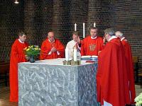 Militärpfarrer Rolf Laumann verabschiedet | | Gottesdienst zur Verabschiedung | Kiel/Glücksburg, 06/2004. Nach nur zwei Jahren im Dienst der Katholischen Militärseelsorge wurde Militärpfarrer Rolf Laumann von seinem Heimatbischof in den Dienst des Bistums zurückgerufen, um im Münchener Norden eine Pfarrei zu übernehmen. Beim Verabschiedungsgottesdienst sagte der Katholische Leitende Militärdekan Kiel/Glücksburg, Militärdekan Msgr. Rainer Schadt: „Allen Militärgeistlichen, die die Militärseelsorge verlassen, schenkt der Militärbischof das Brustkreuz, das ihnen bei ihrer Einführung übergeben wurde. Während der Dienstzeit als Militärgeistlicher hat es ihnen in vielen Situationen als Zeichen gedient, dass die Militärgeistlichen unter dem Kreuz ihre Seelsorgearbeit verrichten.“