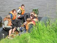Gegen 8.00 Uhr am Samstag sieht es ganz gut aus. »Petrus könnt’ es mit uns wohl etwas besser meinen«, grummelt jemand über den Platz. Das Wetter sieht nicht so toll aus wie erhofft, doch es ist trocken. Beim Frühstück unter freiem Himmel bricht dann plötzlich ein Gewitter los: Frühstück im Zelt ist auch nett. Bis etwa 10.30 Uhr geht es zwischen Hoffen und Bangen hin und her, dann aber klart es soweit auf, dass die Boote ins Wasser gelassen werden können. Schwimmwesten werden angelegt, Verhaltensregeln ausgegeben und dann kann es losgehen.