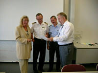 Lebenskundlicher Unterricht soll erneuert werden | | Zufrieden mit den Ergebnissen des Impulsseminars waren Verantwortliche des Führungsstabes der Streitkräfte und die Vertreter von KMBA und EKA (v.l.: Militärdekanin Christel Göltzer, EKA, Kapitän z.S. Karl-Erich Houtrouw, Oberstleutnant August Bauer, beide Fü S I 3, Direktor Harald Oberhem, KMBA) | Zu einem Impulsseminar lud der RL Fü S I 3, Kapitän z. S. Karl-Erich Houtrouw, vom 16. bis 18. August 2004 Vertreter der Teilstreitkräfte sowie von Evangelischem Kirchenamt und Katholischem Militärbischofsamt in das Koblenzer Zentrum Innere Führung ein. Mit dabei waren auch Soldaten aus Herr, Luftwaffe und Marine, die unterschiedlichen Dienstgradgruppen angehörten. Sie sollten aus der alltäglichen Praxis des LKU an ihren jeweiligen Standorten bzw. an Bord ihres Schiffes berichten.