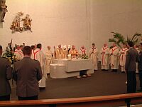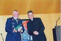 49. Gesamtkonferenz in Untermarchtal | | | In diesem Jahr beschäftigten sich die Konferenzteilnehmer während ihrer Jahrestagung vom 18. - 22. Oktober 2004 im Bildungshaus der Barmherzigen Schwestern vom HL. Vinzenz von Paul in Untermarchtal mit dem wichtigen Thema der Feier der Eucharistie im Leben der Kirche. Militärbischof Dr. Walter Mixa selbst hielt den Vortrag im Anschluss an die Enzyklika "Ecclesia de Eucharistia" und die Instructio "Redemptionis sacramentum". In der Vorlesung "Der Dienst des Heiligen Stuhles am Frieden" erörterte Prof. Dr. Dr. h.c. mult. Herbert Schambeck, Präsident des österreichischen Bundesrates i.R. und Mitglied der Päpstlichen Akademie für Sozialwissenschaften, die "Instrumente kirchlicher Friedenspolitik des Heiligen Stuhls". Da die Frage der Feier der Eucharistie und die sich in der Praxis der Militärseelsorge damit häufig verbindende Fragestellung nach Gottesdienstfeiern vor allen im ökumenischen Kontext den Nerv im Leben der Militärseelsorge trifft, hatten die Seelsorger Gelegenheit sich zu dem Thema "Eucharistie und Abendmahl: Übereinstimmungen und Differenzen" mit Dr. Burkhard Neumann, dem Direktor des Johann-Adam-Möhler Instituts, dem katholischen Zentralinstitut für ökumenische Fragen in Deutschland, auseinander zu setzen. In einer Podiumsdiskussion mit katholischen und evangelischen Seelsorgern wurde dies nochmals vertieft. In der gegenwärtigen Situation der Transformation der Bundeswehr und der zugleich knappen Kassen gilt es für das Verteidigungsministerium manche Schwierigkeiten zu bewältigen. Als ein wichtiger Ansprechpartner der Militärseelsorge im BMVg referierte Brigadegeneral Karl Schreiner, Stabsabteilungsleiter im Führungsstab der Streitkräfte zum Thema "Der Mensch im Spannungsfeld der Transformation". Ebenfalls ausgehend von der Transformation der Bundeswehr als einem beständigen Prozess der Veränderung und der Erneuerung sprach Militärgeneralvikar Walter Wakenhut in seinem Bericht zur Lage einige wichtige für die Militärseelsorge bedeutsame Themen an. Wakenhut hob besonders das Engagement der ehrenamtlich in der Militärseelsorge tätigen Soldatinnen und Soldaten hervor. Als eine wesentliche Hilfe in der Arbeit der Militärseelsorger stellte Wakenhut die neue Weisung des Generalinspekteurs für die Zusammenarbeit mit den Angehörigen der Militärseelsorge vom Dezember vergangenen Jahres vor. In dieser würden die militärischen Vorgesetzten auf die Bedeutung der Seelsorge in der Bundeswehr hingewiesen und an ihre Verantwortung bei der Umsetzung des militärischen Auftrags erinnert und darauf verpflichtet.