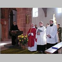 Fußwallfahrt nach Wechselburg | | | Zum Abmarsch trafen sich die Teilnehmer in Rochlitz, um auf dem alten Pilgerweg zu der romanischen Basilika in Wechselburg zu gelangen. Der sechs Kilometer lange Weg führte durch eine idyllische Landschaft. Organisatoren waren der Katholische Leitende Militärdekan aus Erfurt Hartmut Gremler, Militädekan Wolfgang Schilk von der Offizierschule des Heeres in Dresden, Militärpfarrer Andreas Tober aus Frankenberg und Militärpfarrer Andreas Ginzel aus Burg. Ausschlaggebend für diese Wallfahrt war das Gebet für die Kameraden und die Militärpfarrer in den Einsatzgebieten. An drei Stationen wurden Besinnungstexte, Gebete und Fürbitten gesprochen. Bei Ankunft in der Klosterkirche in Wechselburg erwartete die Gruppe Pater Rupert, Prior des Benediktinerklosters. Pater Rupert ist bereits 1993 von Ettal nach Sachsen gezogen. Mittlerweile sind es fünf Mitbrüder die dort im Kloster wohnen. Ein Jugend- und Familienhaus ist angeschlossen, das mit ca. 40 Übernachtungsmöglichkeiten für Gruppen und Einzelgäste Raum und Atmosphäre für Bildung, Erholung und geistliche Besinnung bietet.