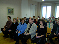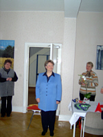 Monika Schiefke-Schotte verabschiedetAltersteilzeitruhestand, Ruhephase oder Rentnerdasein? | | Familie: v.l. Olaf Schiefke mit seiner Frau Tanja , Monika Schiefke-Schotte, Klaus Schotte, Sabine Schiefke | Kiel, 01.01.2005: Nach fast zweijähriger Dienstzeit im Dekanat des Kath. Leitenden Militärdekans in Kiel wurde Frau Schiefke-Schotte verabschiedet. Sie beginnt am 1. Januar den zweiten Teil ihrer Altersteilzeit, in der sie nicht mehr zum Dienst erscheinen muss. Bei der Verabschiedung war man sich nicht im Klaren darüber, wie diese Zeit bezeichnet werden muss. Die offizielle Bezeichnung "Freistellungsphase" jedenfalls wurde von kaum einem Teilnehmer an der Verabschiedung genannt.