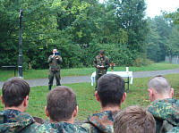 Gelöbnisgottesdienst einmal anders | | HptGefr Rahner mit Trompete (links) und Pastoralreferent Stephan | Am Morgen des 15.September feierte der Kath. Standortpfarrer Bruchsal, Pastoralreferent Thomas Stephan, mit den Rekruten der 6./Kp des ABCAbwBtl 750 aus Bruchsal den Eid- und Gelöbnisgottesdienst - diesmal als Feldgottesdienst - auf dem Biwakplatz des Standortes.