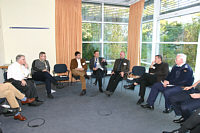 |  | | Seminarteilnehmer im Gespräch mit Pater Harald Leibold (92), einem der ersten Zeitzeugen der katholischen Militärseelsorge |