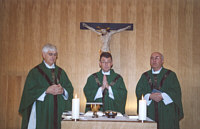Besuch der kroatischen Militärseelsorge | | Gottesdienst in der Kapelle St. Michael im Haus des Katholischen Militärbischofs in Berlin am 07.11.2005.Von links: Der Kroatische Militärgeneralvikar Monsignore Josip Santic, Militärgeneralvikar Prälat Walter Wakenhut und Militärdekan Monsignore Ivan Jurasic | Auf Einladung des Katholischen Leitenden Militärdekans Hannover Msgr. Heinz Peter Miebach machten der kroatische Militärgeneralvikar Msgr. Josip Santic und Militärdekan Msgr. Ivan Jurasic im Rahmen der bestehenden Partnerschaft vom 03. bis 10. November einen Besuch im Dienstaufsichtsbezirk Hannover. Bei der einwöchigen Reise hatten sie Gelegenheit mit deutschen Militärpfarrern und Soldaten ins Gespräch zu kommen. Sie informierten sich insbesondere über die Mitarbeit der Laien in der Militärseelsorge und über die Gemeinschaft Katholischer Soldaten, mit der Absicht, in der kroatischen Militärseelsorge eine Laienarbeit aufzubauen. Eine besondere Freude bereitete ihnen ein Ausflug nach Berlin. Militärgeneralvikar Walter Wakenhut hieß sie im Haus des Katholischen Militärbischofs herzlich willkommen. In der Kapelle St. Michael feierten sie gemeinsam Gottesdienst. Die Stadt mit ihren vielen Sehenswürdigkeiten begeisterte die beiden kroatischen Priester sehr. Mit vielen Eindrücken und Anregungen fuhren sie wieder zurück nach Zagreb.