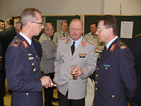 Die Streitkräftebasis ist aus der Bundeswehr nicht mehr wegzudenken | | Während des Empfangs diskutiert Generalleutnant Hans-Heinrich Dieter rege mit