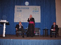 Vom Kalten Krieg zur Friedenssicherung am HindukuschMilitärbischof Dr. Walter Mixa im Politischen Club der CSU-Landtagsfraktion | | CSU Fraktionsvorsitzender Joachim Herrmann, Militärbischof Dr. Walter Mixa und Günter Gabsteiger, Vorsitzender der Arbeitsgruppe Wehrpolitk | Das Interesse am Thema "Christliche Friedensethik" war so groß, dass der Senatssaal im Bayerischen Landtag für die mehr als 400 Gäste zu klein war. Es musste ein zusätzlicher Raum geöffnet werden. Besonderes Interesse galt selbstverständlich dem Gast, den der Politische Club der CSU-Fraktion am 22. Februar zum Vortrag geladen hatte: Dr. Walter Mixa, Katholischer Militärbischof für die Deutsche Bundeswehr und Bischof von Augsburg. Ihn begrüßten der Vorsitzende der CSU-Landtagsfraktion, Joachim Herrmann, und der Vorsitzende der Arbeitsgruppe Wehrpolitik der CSU-Fraktion, Günter Gabsteiger. Mixa sprach über "Neue sicherheitspolitische Herausforderungen und ihre Konsequenzen für eine christliche Friedensethik".