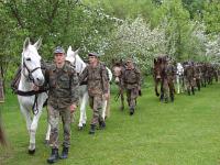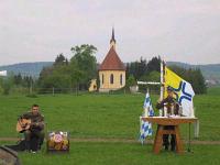 | | Andacht in Sankt Coloman mit dem katholischen Militärpfarrer Martin Strasser | Die Teilnehmer verlegten mit Fahrzeugen nach Höglwörth, von wo aus die Wallfahrer zu Fuß oder hoch zu Ross zum Nordende des Waginger Sees nach St. Coloman marschierten. Am Seehof in Petting wurde zur Mittagszeit eine kurze Andacht gehalten. Am Ende der ersten Etappe wurde auf dem Reiterhof Steiner übernachtet, bevor es am zweiten Tag von Zaiselham über Pfeffersöd (Mittagspause mit Andacht) nahe Tyrlaching ging, um abends auf dem Reiterhof Schrankel bei der Ortschaft Baumgartner in der Nähe von Kastl das Nachtlager zu beziehen. Am dritten Tag wurde von dort aus weiter, bis zum Ziel Altötting, marschiert.