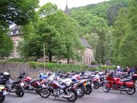 Das Kloster, in dem die Oblaten der Makellosen Jungfrau (OMI) leben und arbeiten, liegt in einem reizvollen Seitental der Mosel. Eine wie für "Mopedfahrer" geschaffene Strecke, geht es doch in Treis an der Mosel hoch in das kurvige Tal. Hauptmann Uwe Thimm vom Luftwaffenamt hatte mal wieder eine tolle Strecke für seine Gruppe ausgearbeitet und vorbereitet. Aber auch das Ziel selbst, Kloster Maria Englport, bot Geschichtliches und Geschichten aus einer bewegten Zeit. So erzählte Pater Kroiß in einer erfrischenden Weise über die Ordensgeschichte und die Legenden, die sich um das Kloster Englport gebildet haben. Auch ließ er nicht die alte Englporter Legende aus, die sich um die als Gnadenbild verehrte Statue der Muttergottes rankt, die in der linken Hand ein Stück Brot hält. Das Gnadenbild eines unbekannten Meisters Kölner Schule von 1420 ist in der Klosterkirche zu besichtigen. In der heutigen Zeit hat sich das Kloster zu einem beliebten Exerzitien- und Tagungshaus entwickelt. Auch größere Gruppen können für ihre Besinnungswochenenden oder Einkehrtage keine abgeschiedenere Gegend finden - Kloster Englport liegt nämlich in einem Handyempfangsloch!