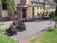 Unterwegs in der EifelMotorradfreizeit des Standortes Fürstenau | | Aufstellung vor der Abteikirche | Motorengeknatter, Lederjacken, Abgaswolken: Manch ahnungsloser Besucher der Zisterzienserabtei Himmerod in der Eifel kam aus dem Staunen nicht mehr heraus, als etwa 60 Biker aus Norddeutschland auf den Vorplatz der Abteikirche auffuhren. Oldies der 50-er Jahre wurden ebenso bewundert wie die neuesten PS-starken heißen Öfen. Himmerod war Zielpunkt der Motorradfreizeit vom 19. bis 23. Juni, die die Katholische Militärseelsorge am Standort Fürstenau im nördlichen Osnabrücker Land unter Leitung des Katholischen Leitenden Militärdekans Hannover, Msgr. Heinz Peter Miebach, organisiert hatte. Verantwortlich für die Tour, die in vier Gruppen zur Familienferienstätte Sankt Ludger in Dahlem-Baasem führte, waren Pfarrhelfer Bernhard Thomes sowie Tour-Guide Hauptfeldwebel Alfred Spinneker.