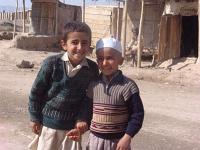 | | Kinder auf der Dorfstraße nahe Kunduz | Ganz deutlich wurde das bei der Fotodokumentation, die mit einer Vielzahl von Bildern die Zuhörer dadurch fesselte, dass bei den Ausführungen immer auch Menschen unmittelbar mit ihren Gesichtern in den Mittelpunkt rückten. Trotz der ärmlichen Lebensumstände, mit der die Bevölkerung Afghanistans tagtäglich zurecht kommen muss, ist sehr bemerkenswert, dass die Menschen immer ein Lächeln erübrigen. Menschen auf dem Markt, Händler auf dem Basar beim Feilschen, Kinder, die an den Rändern der unbefestigten Straßen im Staub spielen, Frauen mit und ohne Burka gehören ebenso zum Straßenbild wie Ruinen von Häusern und Ansammlungen von Schutt und Müll.