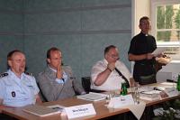Abgeordneter Siebert (CDU/CSU) im Gespräch mit katholischen Soldaten | | von links : OTL Brochhagen, Oberst Blotz, Abgeordneter Siebert, MGV Wakenhut | Berlin, 17.07.06. Die Gemeinschaft Katholischer Soldaten (GKS) lud Bernd Siebert, MdB, Sprecher der Arbeitsgruppe Verteidigung (AGV) der CDU/CSU-Fraktion im Deutschen Bundestag, am 06. Juli 2006 ins Haus des Katholischen Militärbischofs, Berlin, zu einem Politikergespräch ein.