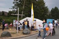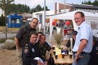 | | Stand der Militäseelsorge bei den Tagen der offenen Tür in "Hohe Düne" Warnemünde | Zum Abschluss der Hanse Sail feierte der Evangelische Militärbischof Peter Krug gemeinsam mit dem Leitenden Katholischen Militärdekan Glücksburg/Kiel, Rainer Schadt, dem Leitenden Evangelischen Militärdekan Kiel, Klaus Grunwald, und dem Evangelischen Standortpfarrer Rostock, Arend Engelkes, einen ökumenischen Gottesdienst an Bord der „Mecklenburg-Vorpommern“. Der katholische Standortpfarrer Rostock, Georg Ischler, ist zur Zeit im Einsatz und konnte nicht teilnehmen.