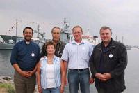 | | von rechts: Katholischer Leitender Militärdekan Rainer Schadt, Evangelischer Pfarrhelfer Thomas Bittins, Katholischer Pfarrhelfer Reinhard Drews, katholische Familienbetreuerin Michaela Groberg, Evangelischer Standortpfarrer Rostock Arend Engelkes | Die Hanse Sail Rostock wurde zum ersten Mal 1991 ausgerichtet. In diesem Jahr kamen nach Angaben der Veranstalter weit mehr als eine Million Menschen nach Rostock, um die 300 beteiligten Schiffe und Boote zu besichtigen und an Ausfahrten teilzunehmen. Nach Einschätzung des für den Bezirk zuständigen Militärdekans Rainer Schadt, der zum dritten Mal an dem maritimen Großereignis teilnimmt, werde die Atmosphäre immer fröhlicher und entspannter. Die Militärseelsorge sei zu dem Ereignis von der Marine „zunehmend gefragt“.