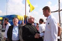 | | Ökumenischer Gottesdienst an Bord der "Mecklenburg-Vorpommern" | Zur Militärseelsorge sagte Mixa, auch in den neuen Bundesländern werde den Soldaten „selbstverständlich“ Seelsorge angeboten. Der Militärseelsorger sei für Soldaten unabhängig von der Konfession ein „Gewährsmann des absoluten Vertrauens“. Auch konfessionslose Soldaten machten sich Gedanken über Religion und Jesus Christus. „Das erleben wir immer wieder bei der jährlichen Soldatenwallfahrt nach Lourdes“. Mixa lobte auch den Stand der Militärseelsorge, der an den vier Tagen der offenen Tür im Standort „Hohe Düne“ in Warnemünde die Aufgabenfelder der Militärseelsorge präsentierte. „Es ist gut, dass der Stand den Wert unseres Angebots zum Ausdruck bringt. Er zeigt auch, dass uns an den Soldatinnen und Soldaten in der Marine etwas liegt und dass sie von der Seelsorge etwas erwarten können“, sagte der Militärbischof. Der Stand wurde betreut von den Pfarrhelfern Reinhard Schulz (katholisch, Rostock), Thomas Bittins (evangelisch, Rostock), Reinhard Drews (katholisch, Parow), Sven Groth (evangelisch, Parow) sowie Familienbetreuerin Michaela Groberg (Rostock).