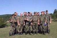 Unter den Wallfahrern auch Vertreter zahlreicher KFOR-Nationen, darunter zwei Dutzend Deutsche und Österreicher aus den Feldlagern in Prizren. Stärkere Gruppen stellen Italiener, Spanier, Franzosen, Portugiesen und Amerikaner. Von einem Parkplatz an einer Fabrikruine führt der Pilgerweg durch eine Berglandschaft, die an die Rhön mit dem Kreuzberg erinnert. Andachten in reizvoller Landschaft, ein fröhlicher Gottesdienst auf einer Wiese unter Mirabellenbäumen. Junge Soldaten aus Tschechien, Belgien oder Finnland nutzen die Rast zum Foto-Shooting. Pater Stephan Schmuck bittet zum Gruppenbild mit General Philippe Sommaire. Ein herrlicher Blick noch auf die Kirche von Letnica, das Ziel der Wallfahrt