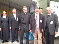 |  | | von links: Militärdekan Hartmut Gremler,Verteidigungsminister Dr. Franz Josef Jung und Militärgeneralvikar Walter Wakenhut im Zelt der Militärseelsorge |