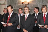 | | Gäste der Katholischen Militärseelsorge beim Festakt | Dr. Niermann reflektierte in seinen Erörterungen über die Veränderung im Bewusstsein von Kirche und Staat bzgl. der gemeinsamen Verantwortung für die Seelsorge an Soldaten. In einer immer stärker säkularisierten Gesellschaft sei ein Wandel in der Unterscheidung zwischen Religion und Welt, zwischen Kirche und Staat und auch in der Konfessionszugehörigkeit deutlich geworden. Dr. Niermann, langjähriger Leiter des Katholischen Militärbischofsamtes in Bonn, ermahnte die Vertreter der Kirche sowie des Staates die gemeinsame Verantwortung für die Seelsorge an Soldaten wahrzunehmen und zu erhalten.