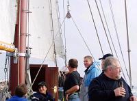 | | | Bei ruhiger See musste die Fahrt mit Motorkraft begonnen werden. Allerdings kam am Nachmittag noch ein wenig Wind auf, so dass die Kommandos zum Segelsetzen doch noch gegeben werden konnten. Wenn auch nur eine kurze Zeit, so konnten wir doch spüren wie es ist, mit Windkraft über das Wasser zu gleiten. Neben dem Erlebnis Seefahrt konnte auf der Segeltour auch ein wenig zur Verbesserung der Gemeinschaft untereinander beigetragen werden.