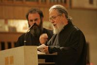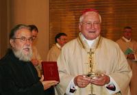 |  | Der griechische Militärseelsorger Pater Niphon Alexiou überreicht Militärbischof Mixa im Pontifikalamt als Zeichen der Gastfreundschaft Brot und eine Ikone.