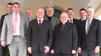 Bund der Deutschen Katholischen Jugend (BDKJ) zum Spitzengespräch in Berlin | | Vorn (v.l.): BDKJ Bundespräses Pfarrer Andreas Mauritz, Militärdekan Monsignore Carl Ursprung, Militärdekan Johann Meyer. Hinten (v.l.): Sprecher "aktion kaserne" Matthias Wirth (Kolpingjugend), BDKJ Bundesvorsitzender Dirk Tänzler, Justitiar Walter Reinartz, Vorstand der Katholischen Soldatenseelsorge Detlef Warwas, LtdWissDir i. K. Lothar Bendel, vom Jugendhaus Düsseldorf Stephan Jentgens | Berlin 04.12.2006. Zum traditionellen Spitzengespräch mit führenden Verantwortlichen in der Kurie des Katholischen Militärbischofs trafen sich der Bundesvorstand des Dachverbandes der katholischen Jugendverbände in Deutschland sowie der Sprecher der Initiative katholischer Jugendverbände im BDKJ „aktion kaserne“ am Berliner Weidendamm.