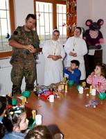 Am vergangenen Mittwoch wurde die Gemeinde durch den Militärpfarrer in Prizren, Dr. Damian Slaczka besucht. Er übergab die Kollekte der letzten Gottesdienste in Höhe von 500 € als Spende an den Kindergarten. Die Freude bei den Schwestern war groß. Schwester Flora ist stolz darauf, dass sich der Kindergarten, seitdem das Gebäude vor drei Jahren mit der Unterstützung einer italienischen Organisation erbaut wurde, nur über Spenden und die geringen Beiträge der Eltern finanziert. | | | Um den Kindergarten betreiben zu können, benötigen sie monatlich 500 €. Sie wies darauf hin, dass drei Kinder ohne Mutter aufwachsen und etliche der Kinder - als Folge des Krieges - traumatisiert sind. Die Kinder sollen es bei ihnen warm und sauber haben. Mittags erhalten sie eine warme Mahlzeit.