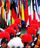 |  | | Eine Gruppe von Schweizer Gardisten vor den Flaggen der teilnehmenden Nationen |