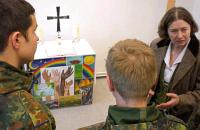 Die Künstlerin Angelika Pohler aus Leipzig fertigte dieses Hungertuch für die Militärseelsorge. Es ist aber nicht irgendein Hungertuch, sondern eines, dessen Motive nach den Wünschen von Soldaten gestaltet worden ist.