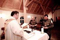 Aufnahme in die Kirche mit Firmung in der Feldkapelle | | Beim Glaubensbekenntnis | Prizren, 22.03.2007. Einen Abend vor seinem Rückflug in die Württenbergische Heimat ist Stabshauptmann Volker Barth aus dem Standort Sigmaringen in einem feierlichen Gottesdienst in die Katholische Kirche aufgenommen worden.