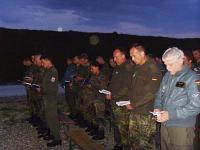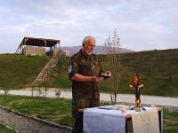 Wortgottesdienst zum Osterfest in Toplicane | | | Toplicane, 23.04.2007. Am Ostersonntag feierte der katholische Militärseelsorger, Pastoralreferent Hans Rückerl, zusammen mit den Heeresfliegern aus Niederstetten und den Kameraden der deutschen sowie der österreichischen und schweizer Luftwaffe im Lager Toplicane einen Wortgottesdienst.