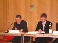 |  | | v.l. Dr. Ulrich Schlie, Leiter des Planungsstabes im BMVg und Moderator (Vormittag) Prälat Dr. Karl Jüsten |