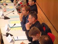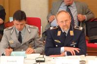 | | v.l. Oberstabsfeldwebel Ralf Eisenhardt, Vorsitzender der Zentralen Versamlung, Oberstleutnant Paul Brochhagen, Bundesvorsitzender Gemeinschaft Katholischer Soldaten (GKS) | Dr. Schlie, Leiter des Planungsstabes im Bundesministerium der Verteidigung, sah keinen Widerspruch zwischen nationalem Interesse und Befriedung des Einsatzlandes. Man dürfe einen Einsatz nicht nur auf humanitäre Aspekte beschränken, so Dr. Schlie.
