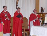 Zur Eucharistiefeier überreichten der stellvertretende Kommandeur des TaktAusbWbZ FlaRakLw USA, OTL Josef Ipfelkofer und der Leiter Lehre und Ausbildung, OTL Uwe Fehr, den Kelch und die Hostienschale mit dem Worten an den neuen Militärpfarrer: "Lieber Herr Pfarrer! Mitte allen christlichen Lebens ist die Feier der Eucharistie. Feiern sie mit uns die Hl. Messe, nicht nur an Sonn- und Feiertagen, auch in unserem Soldatenalltag, hier am Standort, auf den Übungsplätzen und im Einsatz. Sie sind in unseren Familien immer herzlich willkommen. Taufen sie unsere Kinder, trauen sie unsere Brautpaare, verkünden sie uns in der Buße Gottes Verzeihung. Stehen sie unseren Sterbenden bei. Gott begleite ihre ganze Arbeit mit Segen!"