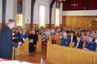 Zum Ende des Gottesdienstes verabschiedete Pater Simeon den Sprecher des Mitarbeiterkreises, Herrn OTL Markus Treml und dessen Ehefrau Claudia mit einem persönlich gewidmetem Wappen, bevor nach der 2-stündigen Einführungszeremonie die Schlacht am kulinarischen Buffet beginnen konnte.