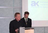 Militärdekan Joachim Simon, der in seinem Aufgabenbereich im Katholischen Militärbischofsamt (KMBA) mit den Kontakt und die Zusammenarbeit zu den Militär- und Verteidigungsattachés verantwortet, dankte zum Schluss mit einem Präsent, welches den Geschäftsführer der "aktion kaserne" an seinen Vortrag erinnern wird.