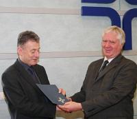 Militärdekan Miebach feiert 25-jähriges Dienstjubiläum | | Militärgeneralvikar Walter Wakenhut (l.) und Militärdekan Heinz Peter Miebach | Hannover, 01.02.2008. Militärdekan Monsignore Heinz Peter Miebach (63), Katholischer Leitender Militärdekan Hannover, konnte am 01. Februar 2008 sein 25-jähriges Dienstjubiläum in der Katholischen Militärseelsorge feiern. Militärgeneralvikar Walter Wakenhut überreichte ihm die Urkunde.