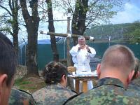 | | | Als dann der Befehl kam, dass die Kompanie im Anschluss für weitere vier bzw. schließlich fünf Wochen nach Nothing Hill verlegt, war klar, dass Pastoralreferent Rückerl seine Kameraden auch dort nicht vergisst, sondern weiterhin betreut. Daher war er, nachdem sich die Kameraden "gut" eingerichtet hatten bereits nach zweieinhalb Wochen dort um mit "seinen Regenern" zusammen mit französischen Kameraden u. a. aus Haiti und Belice Gottesdienst zu feiern. Dies war für alle ein sehr schönes Erlebnis.