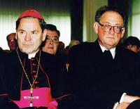 50-jähriges Priesterjubiläum von Militärgeneralvikar a. D. Dr. Niermann | | Militärgeneralvikar a. D. Dr. Ernst Niermann (r.) und + Militärbischof Dr. Dyba | Berlin, 01.07.2008. Militärgeneralvikar a. D. Dr. Ernst Niermann (78), Apostolischer Protonotar, feiert am 2. Juli sein goldenes Priesterjubiläum. Vor 50 Jahren empfing er, nach Studien in Bonn und Innsbruck, in Aachen die Priesterweihe.