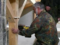 Segnung eines UnterkunftsgebäudesKleine Feier am Starnberger See | | OTL Ernst Schmidhuber befestigt das Holzkreuz | Pöcking, 28. Oktober 2008. Das neu sanierte Unterkunftsgebäude 86 in der General-Fellgiebel-Kaserne in Pöcking wurde am Dienstag, den 28.10.2008, durch die katholische Militärseelsorge gesegnet.