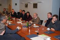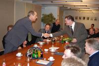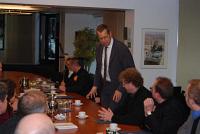| | Wehrbeauftragter Robbe inmitten der neu in der Militärseelsorge tätigen Priester, Pastoralreferenten und Ordensschwestern | Schon bei der Vorstellung seines Amtes und seiner Aufgaben wurde deutlich, dass es nicht nur eine räumliche Nähe zwischen dem Amtssitz des Wehrbeauftragten und dem Katholischen Militärbischofsamt gibt, sondern dass Robbe sich auch der Arbeit der Militärgeistlichen verbunden fühlt. Zugleich beantwortete er ausführlich zahlreiche Fragen und zeigte sich sehr interessiert an den ersten Eindrücken aus der Praxis vor Ort.